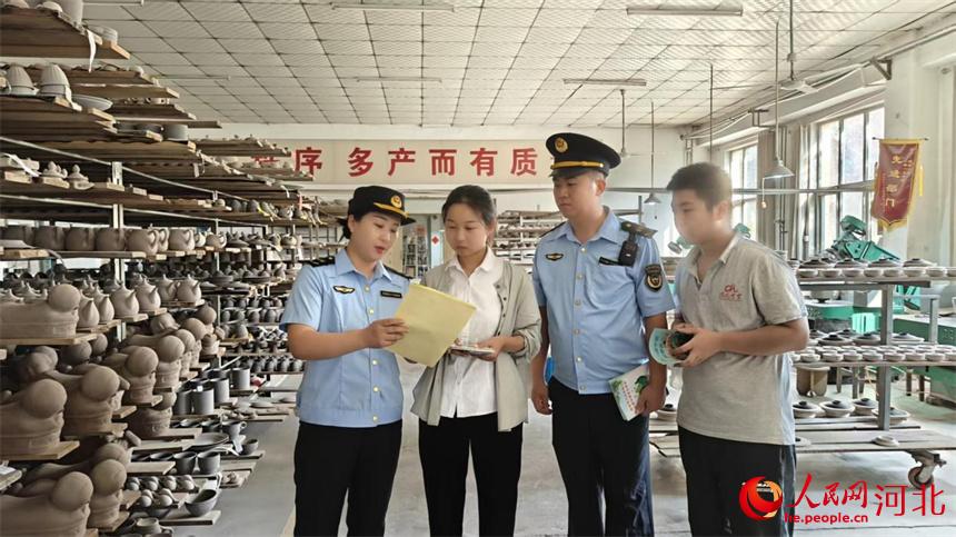 曲阳县生态环境部门工作人员入企帮扶。人民网记者 杨文娟摄