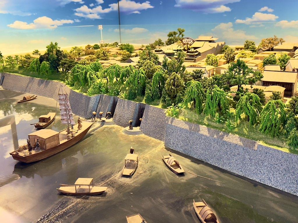 油坊码头沙盘展现了古代船只往来运输的繁荣景象。河北日报见习记者 崔玉洁 摄