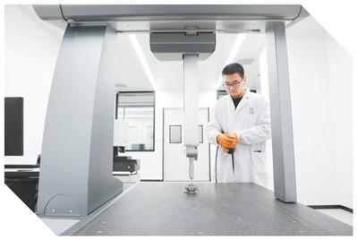 技术人员在中塞(国际)轴承产业共享实验室检测轴承三维尺寸。 沈建荣 摄