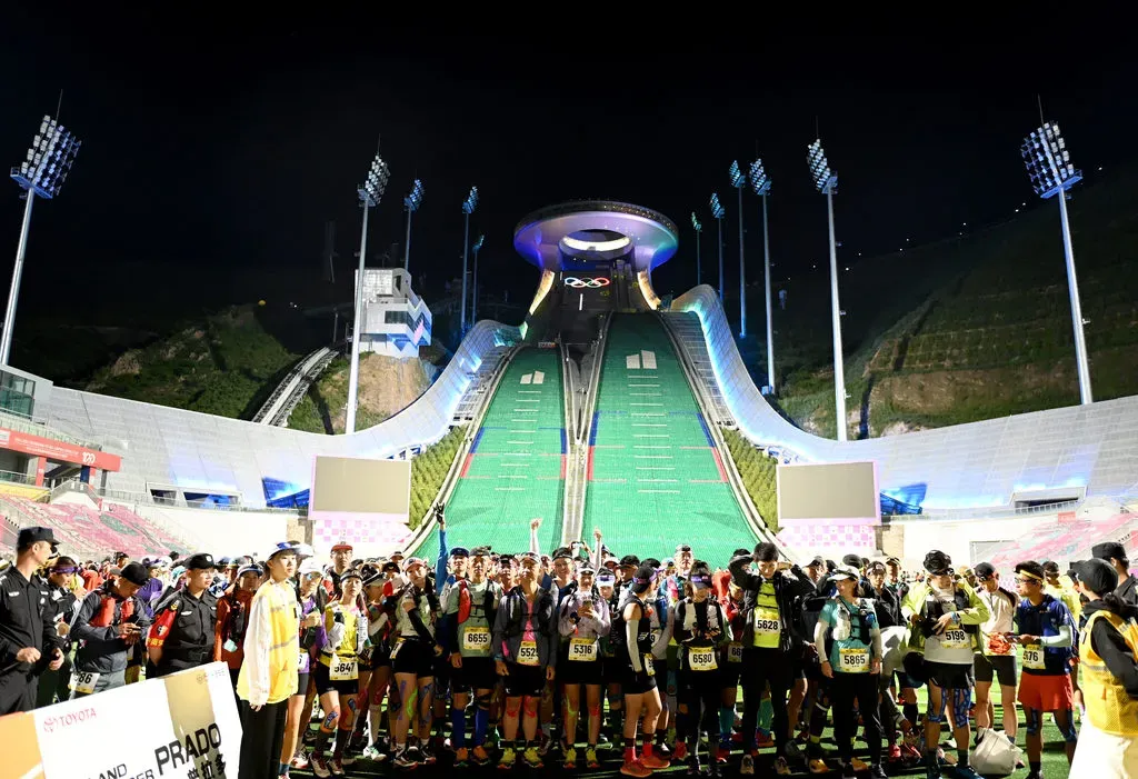 7月12日晚,崇礼168超级越野赛雪如意70组在国家跳台滑雪中心起跑。
