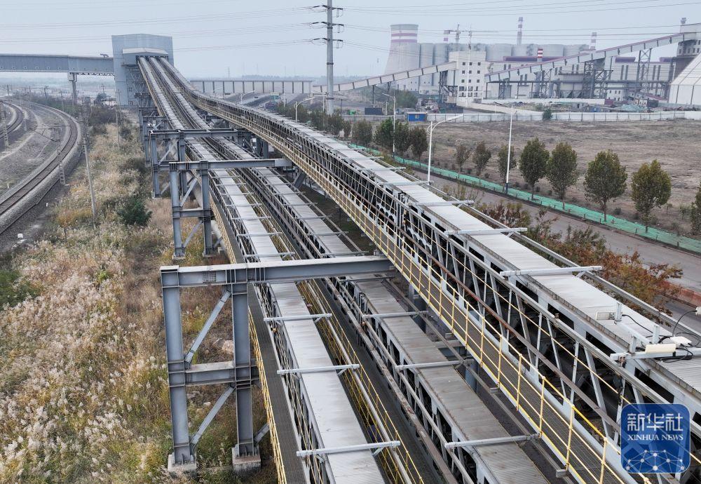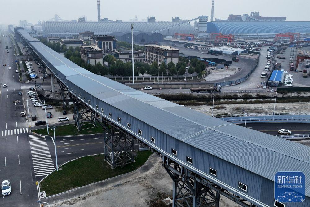 ↑ 这是10月28日拍摄的唐山海港经济开发区皮带运输廊道(无人机照片)。