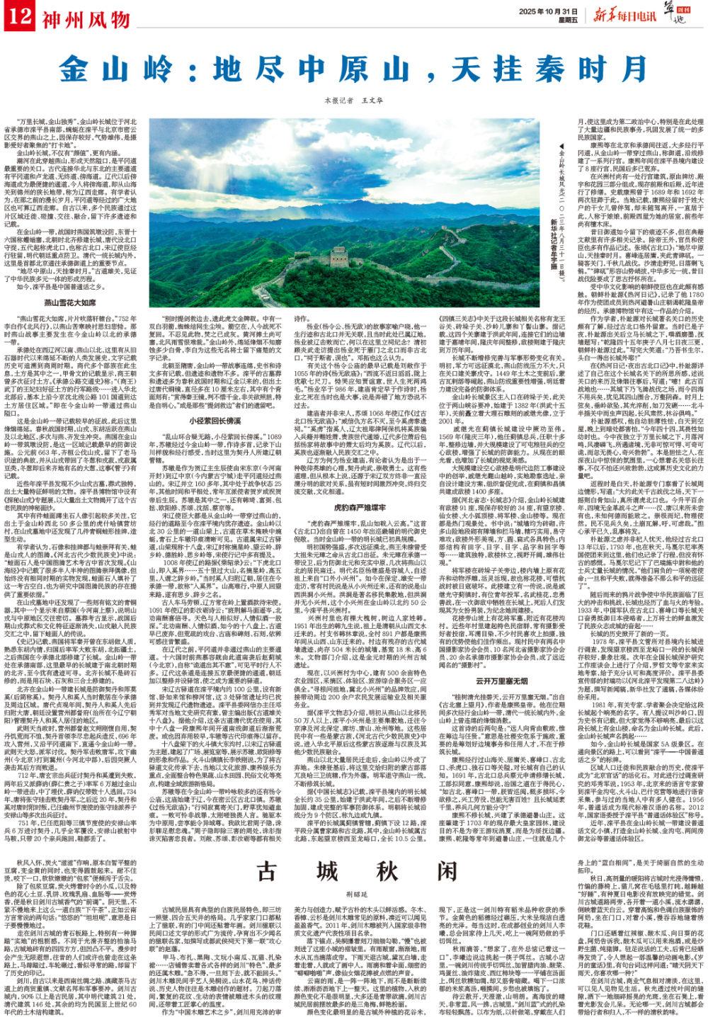 “虎豹森严雉堞牢,乱山如戟入云高。”这首《古北口》出自曾在1450年出巡畿辅的明代御史倪敬。当时金山岭一带的明长城已初具规模。
