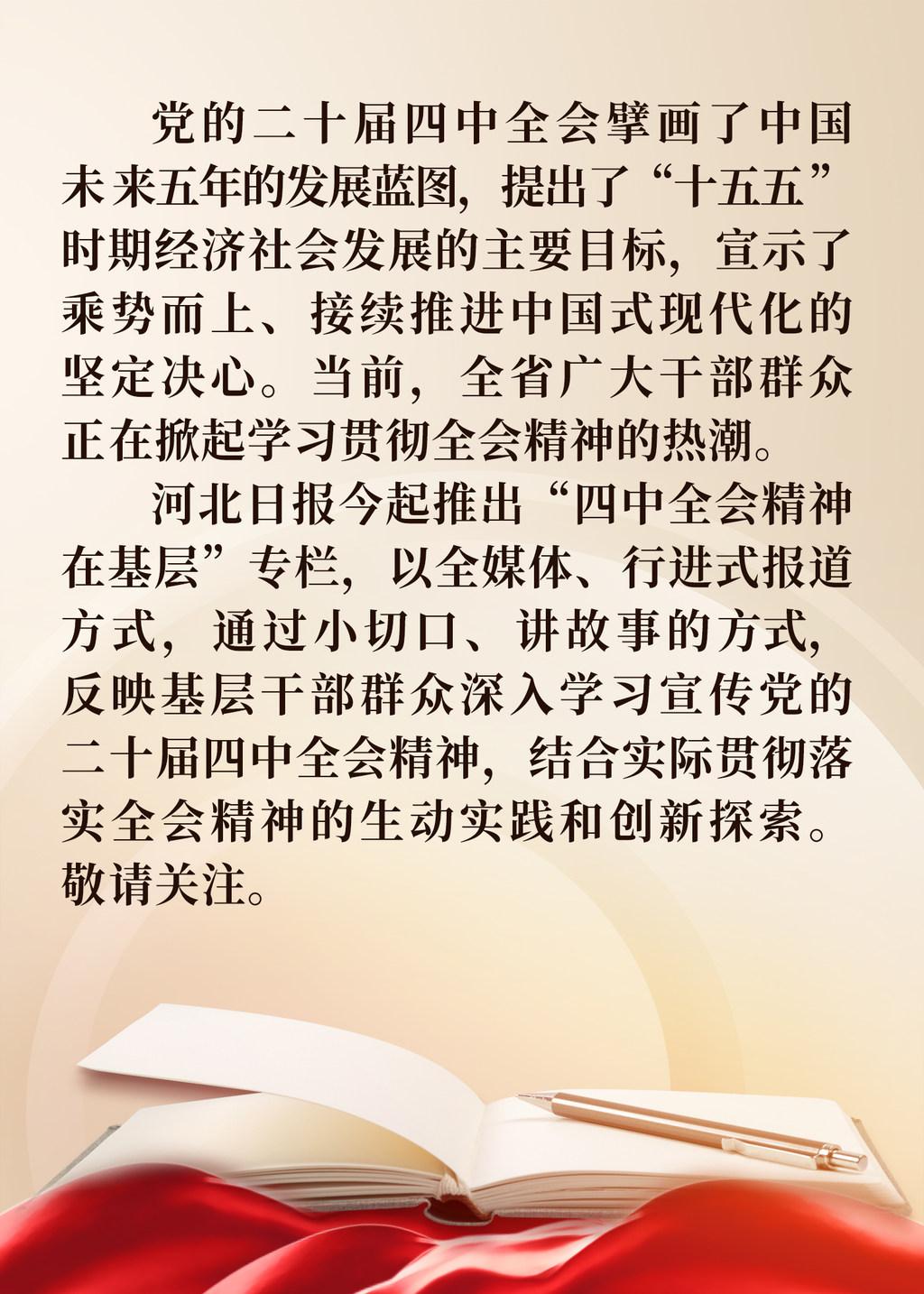 “这是全省第一个全要素创新综合体,我们一定要把它打造成运行高效、成果集聚、人才荟萃、生态完善的标杆载体。”郝存明信心满满,“让‘京津研发、河北转化’结出更多硕果,这是我们贯彻落实全会精神的最好答卷。”(河北日报记者 周洁)