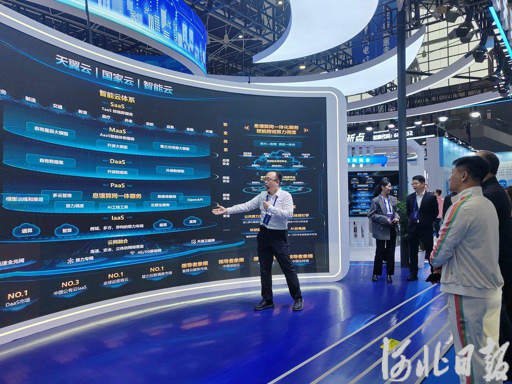 10月17日,在2025中国国际数字经济博览会上,河北电信的工作人员正在向参展商介绍公司算力布局及应用情况。河北日报记者 方素菊 摄