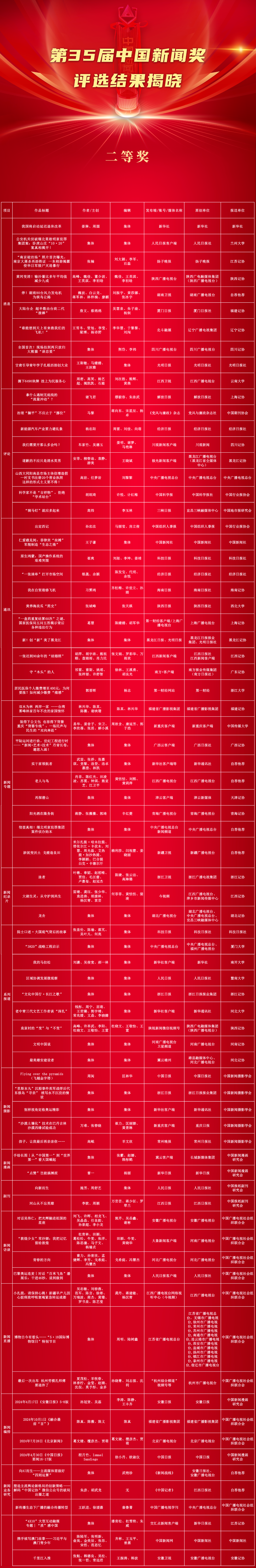 祝贺!第35届中国新闻奖评选结果揭晓