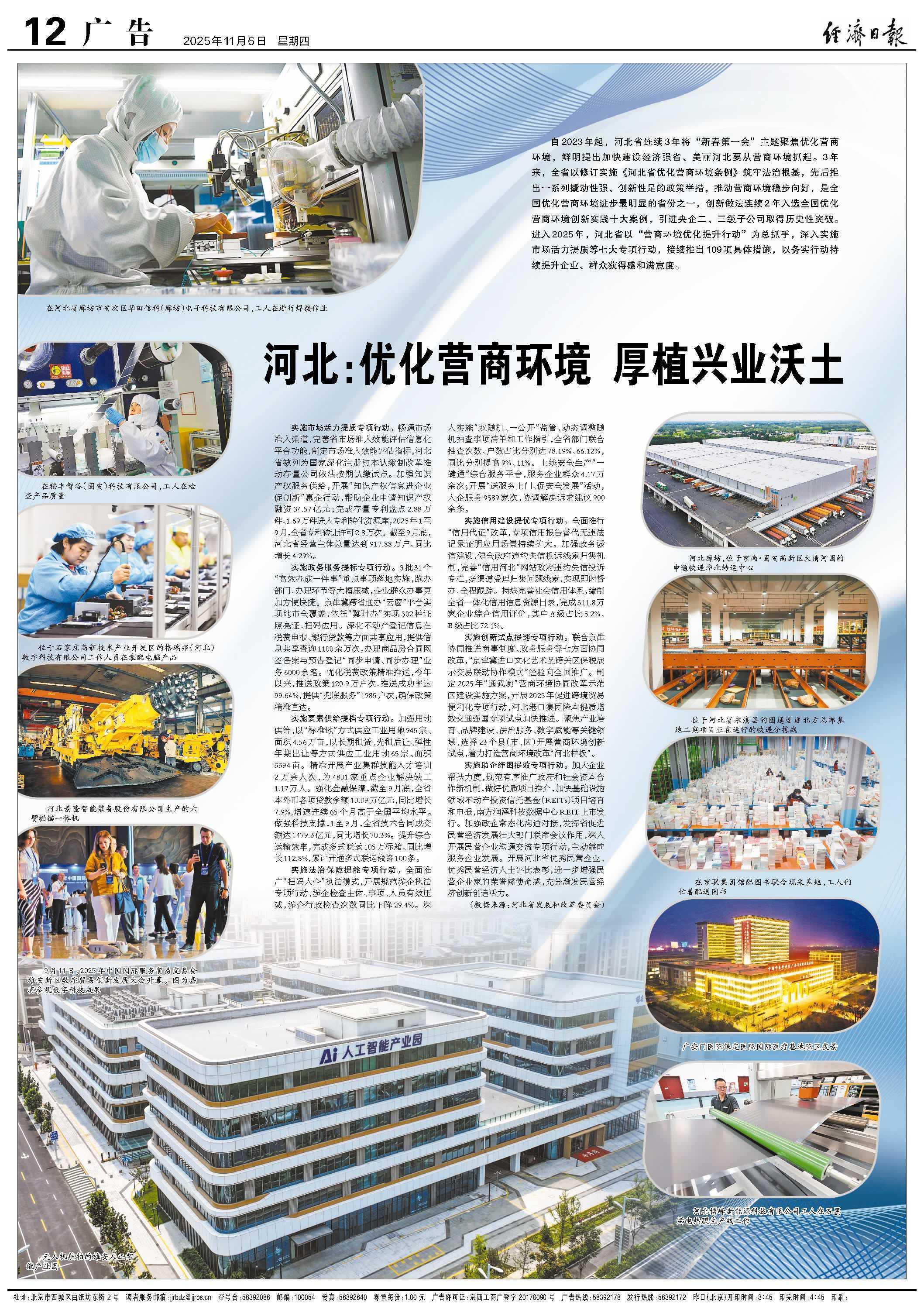 自2023年起,河北省连续3年将“新春第一会”主题聚焦优化营商环境,鲜明提出加快建设经济强省、美丽河北要从营商环境抓起。3年来,全省以修订实施《河北省优化营商环境条例》筑牢法治根基,先后推出一系列撬动性强、创新性足的政策举措,推动营商环境稳步向好,是全国优化营商环境进步最明显的省份之一,创新做法连续2年入选全国优化营商环境创新实践十大案例,引进央企二、三级子公司取得历史性突破。进入2025年,河北省以“营商环境优化提升行动”为总抓手,深入实施市场活力提质等七大专项行动,接续推出109项具体措施,以务实行动持续提升企业、群众获得感和满意度。