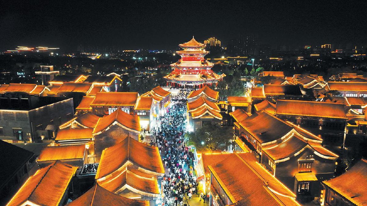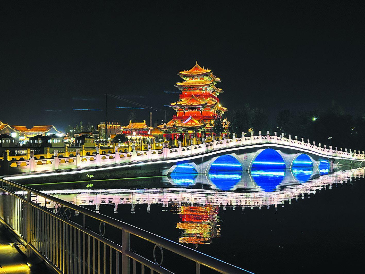 10月29日,沧州灯光璀璨的南川楼和南川老街。 受访者供图