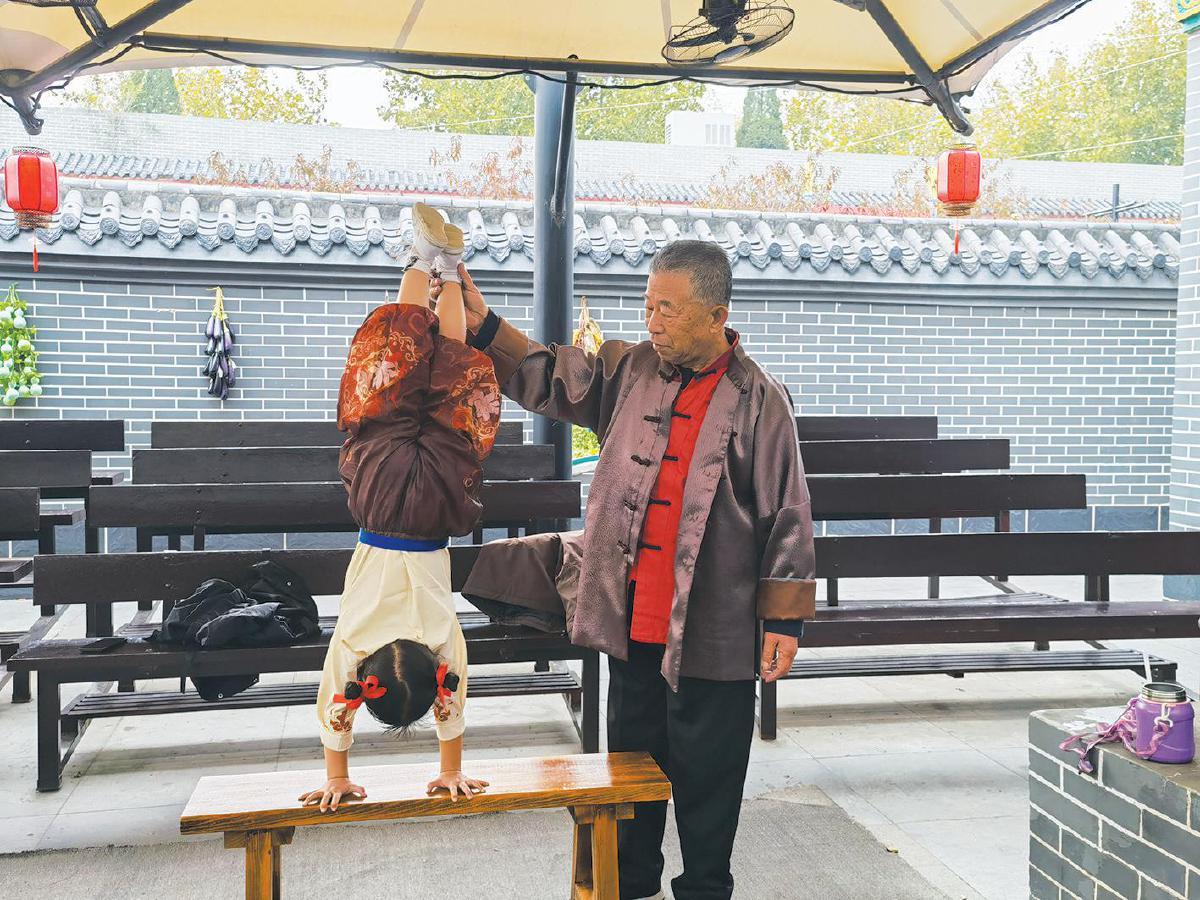 10月30日,70岁的彭彦华指导小徒弟六六练功。 寇家祥 摄