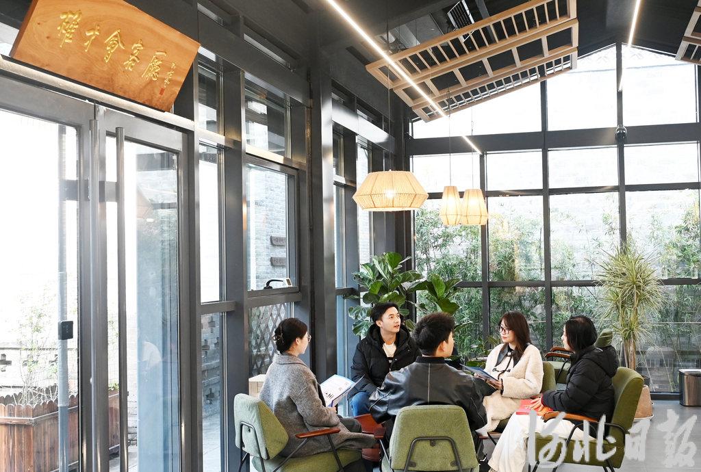 11月11日,雄安新区雄才大厦“雄才会客厅”内,年轻人聚在一起分享工作感受。河北日报记者 刘光昱 摄
