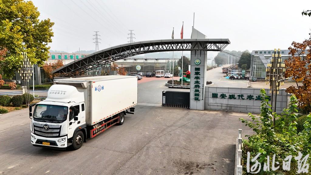 10月28日,一辆满载净菜的货车驶出固安县顺斋瓜菜种植专业合作社。河北日报记者 王伟 摄