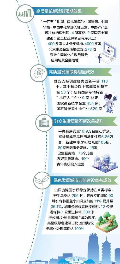 “高质量疏解达到预期效果,雄安正在成为高等教育和人才密集区、高端医疗密集区、央企机构和创新业务板块集聚区。”雄安新区党工委副书记、管委会常务副主任吴波说。