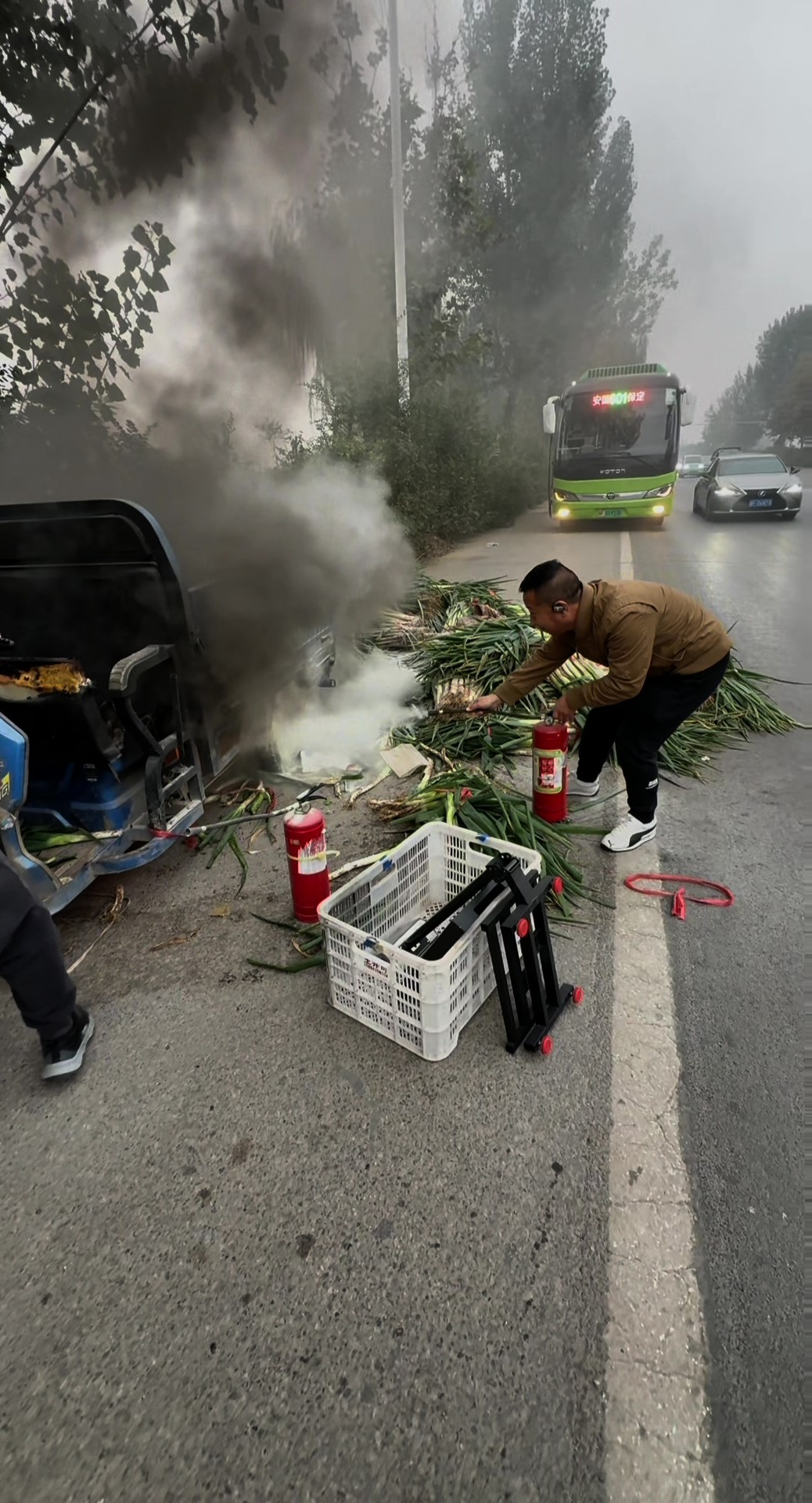 这支由陌生路人临时组成的“救火队”,就像一场及时雨扑灭了三轮车上的大火,然而爱心接力还在继续。灭火后,张磊了解到三轮车车主刘坤因患过脑血栓身体不方便,家中还有三亩多地的大葱没有卖出去。