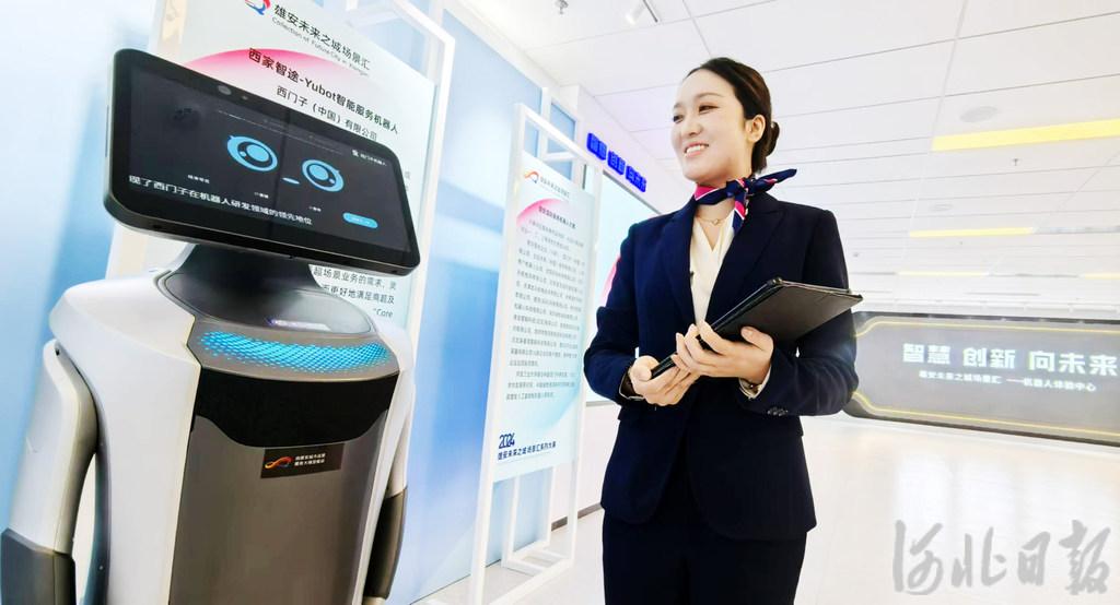 近日,雄安机器人大厦内,工作人员向参观者展示机器人产品。河北日报记者 刘光昱 摄