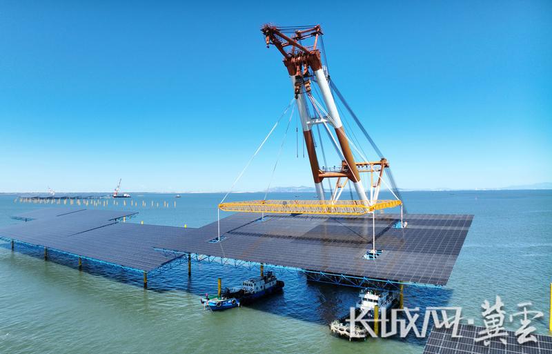 正在秦皇岛市昌黎县海域建设的海上光伏项目。新华社发