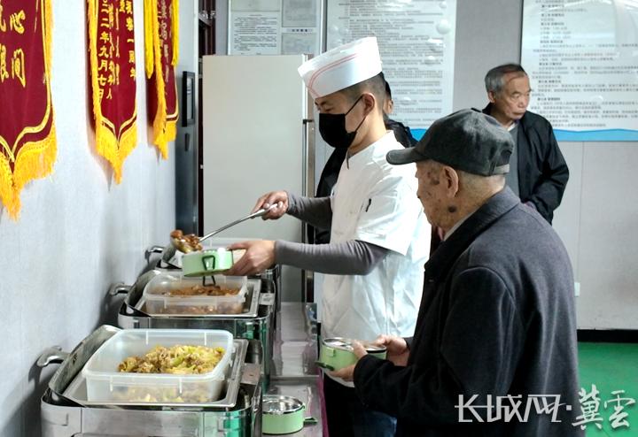 芹菜炒肉、红烧茄子、冬瓜炖豆腐……在食堂后厨,厨师孙弘泽正按照提前定好的菜单,有条不紊地忙活着,“老人很多都有‘三高’,做饭的时候就要‘三少’:少油少盐少糖。每天的菜单还要不一样,让老人们吃得健康,吃得有滋味。”