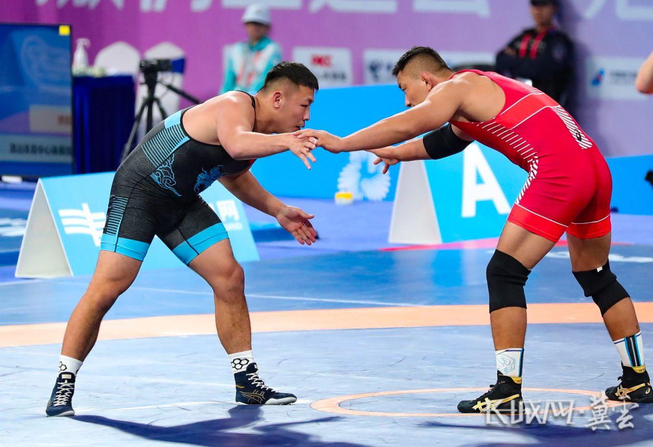 李培隆(左)夺得男子自由式摔跤86公斤级金牌。长城网·冀云客户端记者 王亮 摄