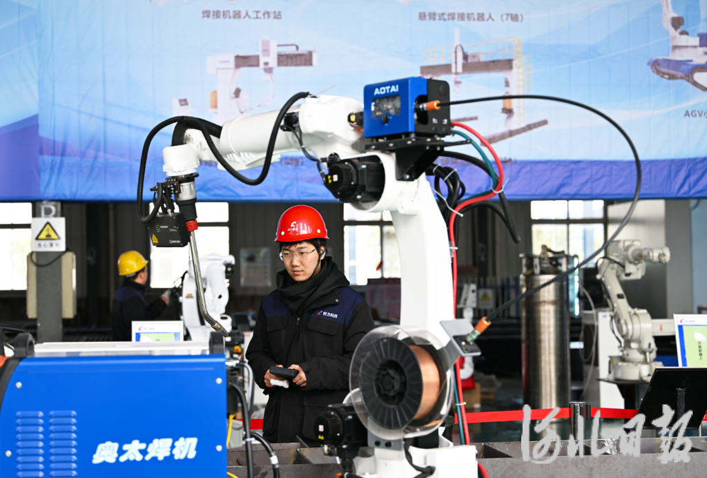 3月4日,位于邢台经济开发区的国家级专精特新“小巨人”企业河北创力机电科技有限公司,工人在调试免试教焊接机器人。河北日报记者 赵永辉 摄