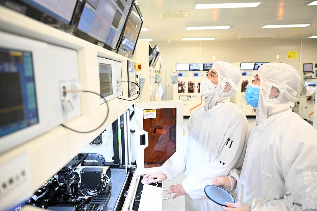 河北圣昊光电科技有限公司的技术人员在芯片测试机生产车间查看设备运行状态。河北日报资料片