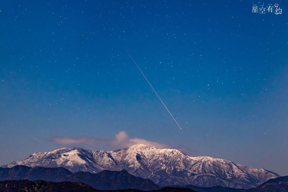 2024年12月14日,在北京市门头沟区百花山自然风景区拍摄的双子座流星雨。(钟奕 摄)