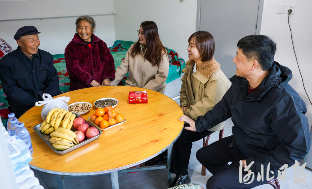 11月20日,胡冰莹(右二)和孙相宜(中)到于桂兰(左二)家走访。河北日报记者李佳泽摄