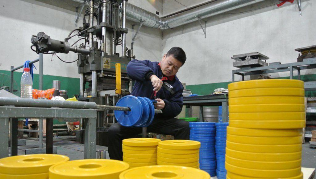 河北张孔杠铃制造有限公司生产车间。