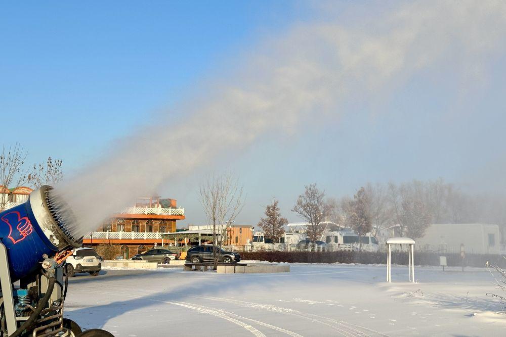 今冬网红大雪人造雪现场。新华社发