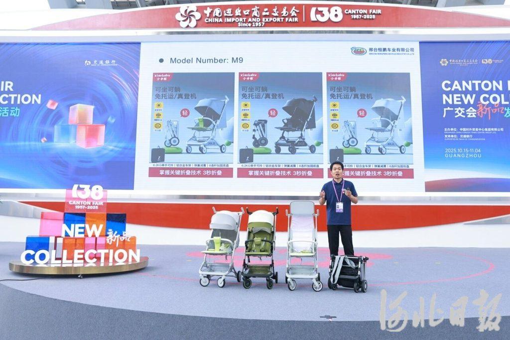 11月28日,平乡县河古庙镇小卡布儿童用品有限公司(以下简称“小卡布”)产品展厅,公司总经理王占营俯身演示着一辆浅灰色儿童推车。他单手握住推把,随着“咔嗒”一声轻响,车身顺势收拢,在几秒内完成了折叠,体积与一个登机行李箱相仿。
