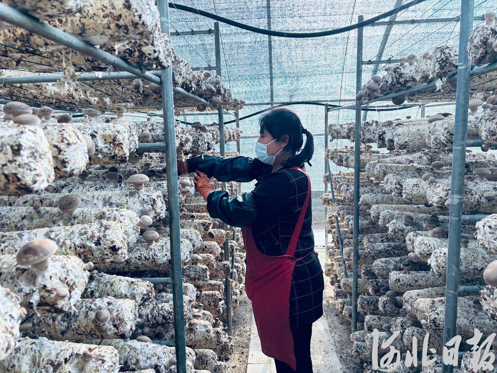 12月1日,阜平县色岭口村村民正在村东的食用菌大棚里采摘香菇。河北日报记者 李巍 摄