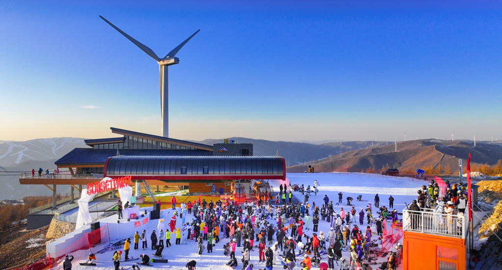 11月22日,在雪如意滑雪场,游客参加落日派对。鲍志超 摄