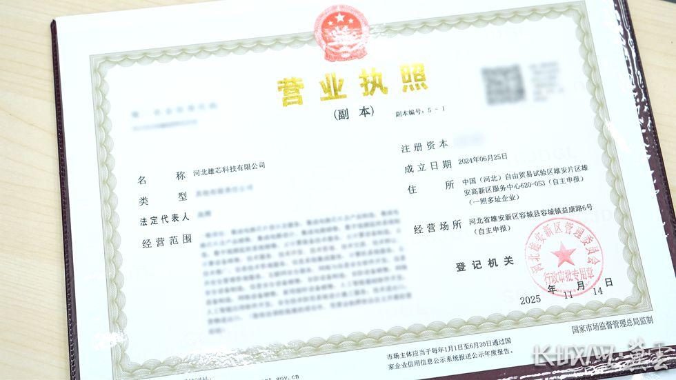 河北雄芯科技有限公司的营业执照。刘笑男 摄