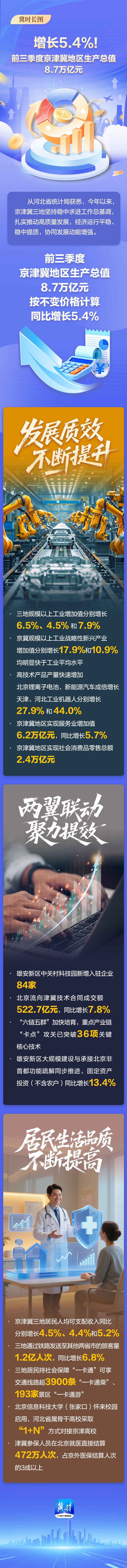 冀时长图丨增长5.4%!前三季度京津冀地区生产总值8.7万亿元