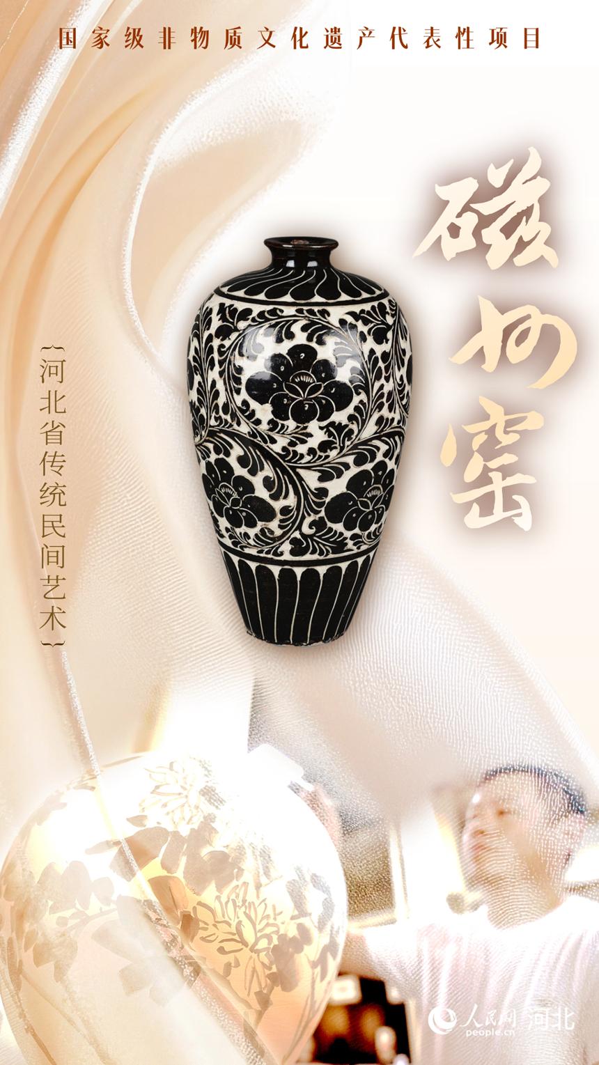 磁州窑肇始于八千年前的磁山文化,演进于魏晋隋唐,鼎盛于宋金元,至今万年仍窑火不断。磁州窑以“白地黑花”工艺闻名,开创性地将陶瓷与绘画完美融合,打破了同期五大名窑的单色釉局限,开创了中国陶瓷美学新境界与水墨绘画艺术的先河。2006年,磁州窑烧制技艺被列入首批国家级非物质文化遗产名录。