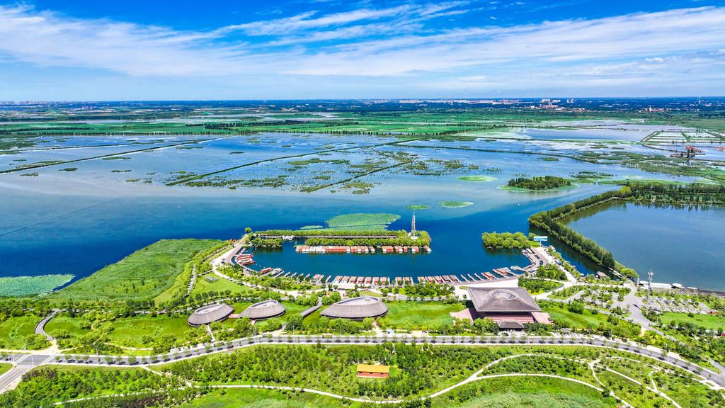 “十四五”时期,雄安新区坚持先植绿后建城,累计造林48.3万亩,绿化面积达74.3万亩,森林覆盖率提升至35.1%。坚持补水、治污、防洪“三位一体”统筹规划、协调推进,白洋淀水质连续4年稳定在Ⅲ类标准。以水润城打造公园城市,累计建成3.9万亩城市公园,悦容公园、金湖公园、燕南堤等一批美景火爆出圈,呈现出“船在水中游、水在城中流、城在绿中座、人在画中行”的华北水乡美丽景象。