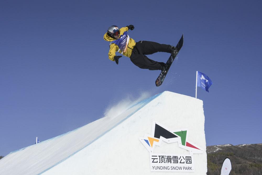 11月29日,中国选手苏翊鸣在决赛中。当日,国际雪联大跳台世界杯云顶站单板滑雪男子组决赛在河北省张家口市崇礼区云顶滑雪场进行。新华社记者 卢星吉 摄