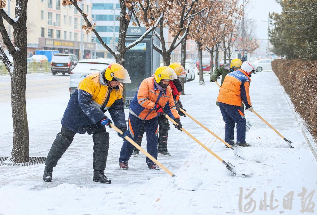 12月12日,张家口市崇礼区环卫工人在清理积雪。当日,张家口市迎来降雪天气,张家口市环卫、交通等部门出动人员、车辆及时清理道路积雪,确保城市路网安全畅通。河北日报记者 耿辉 摄