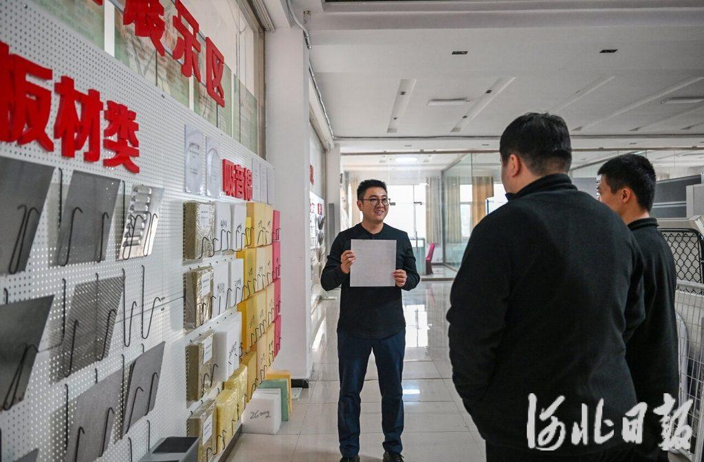 11月22日,逯千里(左)向客户介绍产品。河北日报记者 李东宇 摄