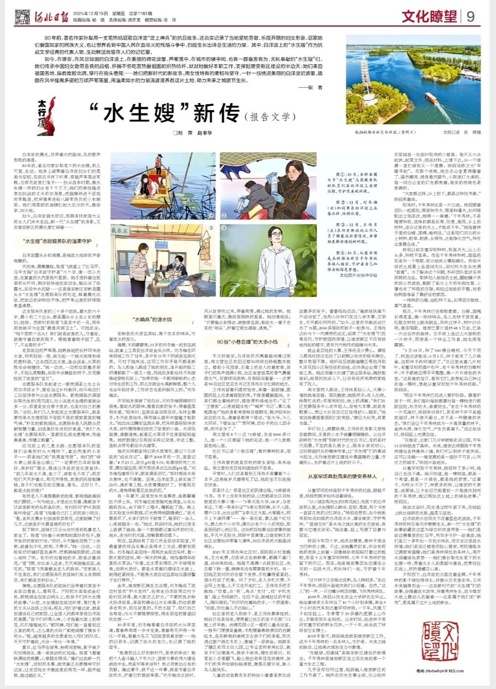 白洋淀的水在阳光下泛着蓝色的波浪,千年秀林的树在春风中默默生长,新一代“水生嫂”的故事就藏在这蓝与绿交织的音符里……她们是淀边晨雾里的红马甲,用双手守护一淀清波;她们是三十多年如一日的水哨兵,用日志记录淀水深情;她们是回迁楼里的贴心管家,用民情账本记满家常温暖;她们是秀林深处的务林人,用汗水浇灌绿色梦想……她们像孙犁先生笔下的水生嫂一样,带着水乡人的柔韧与善良,把责任扛在肩上,把热爱藏在心里。
