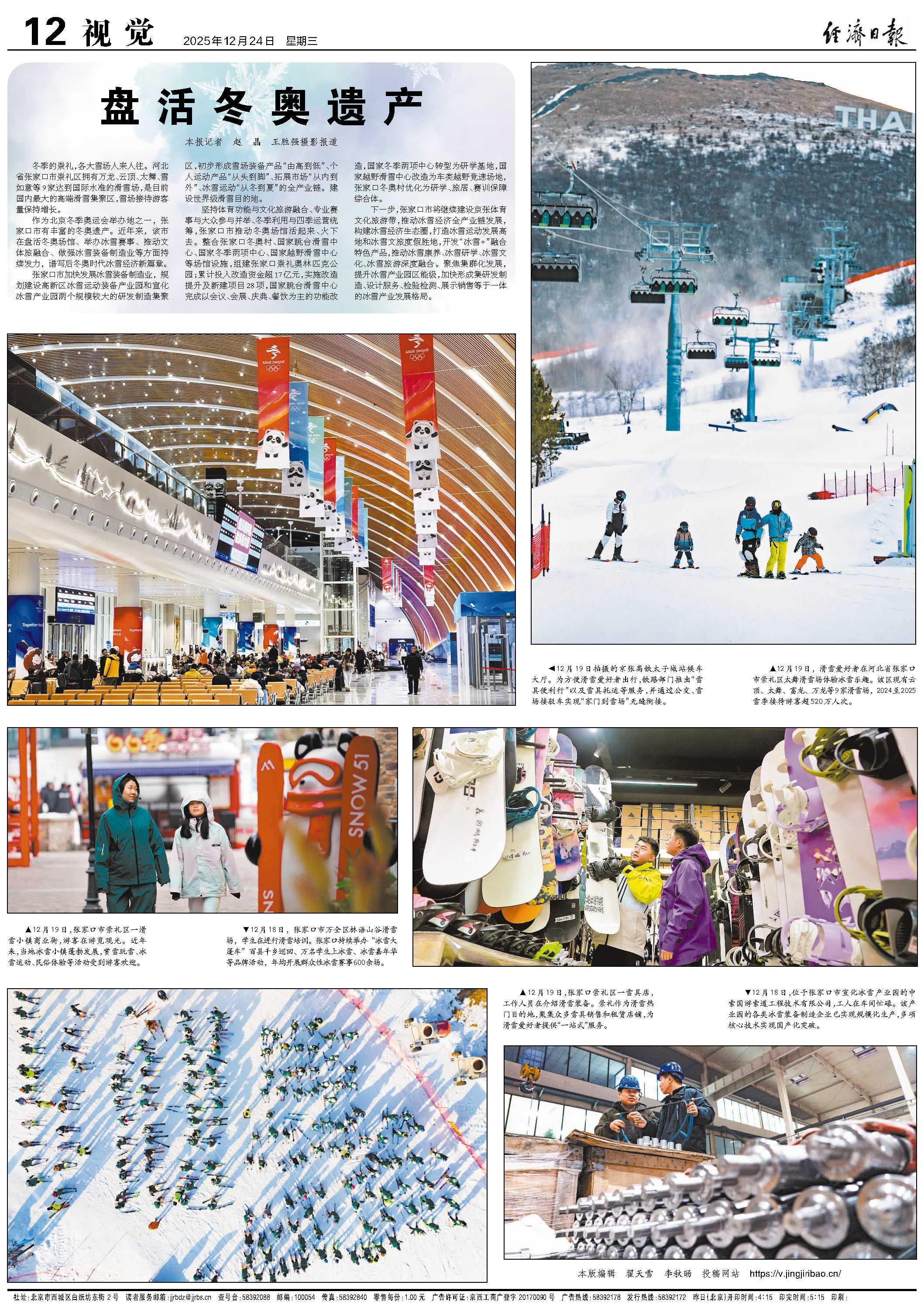 冬季的崇礼,各大雪场人来人往。河北省张家口市崇礼区拥有万龙、云顶、太舞、雪如意等9家达到国际水准的滑雪场,是目前国内最大的高端滑雪集聚区,雪场接待游客量保持增长。