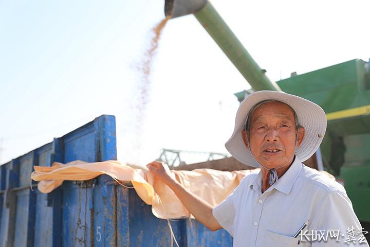 河北省小麦专家指导组组长郭进考查看丰收的“马兰1号”小麦。长城网·冀云客户端记者 李佳琦 摄