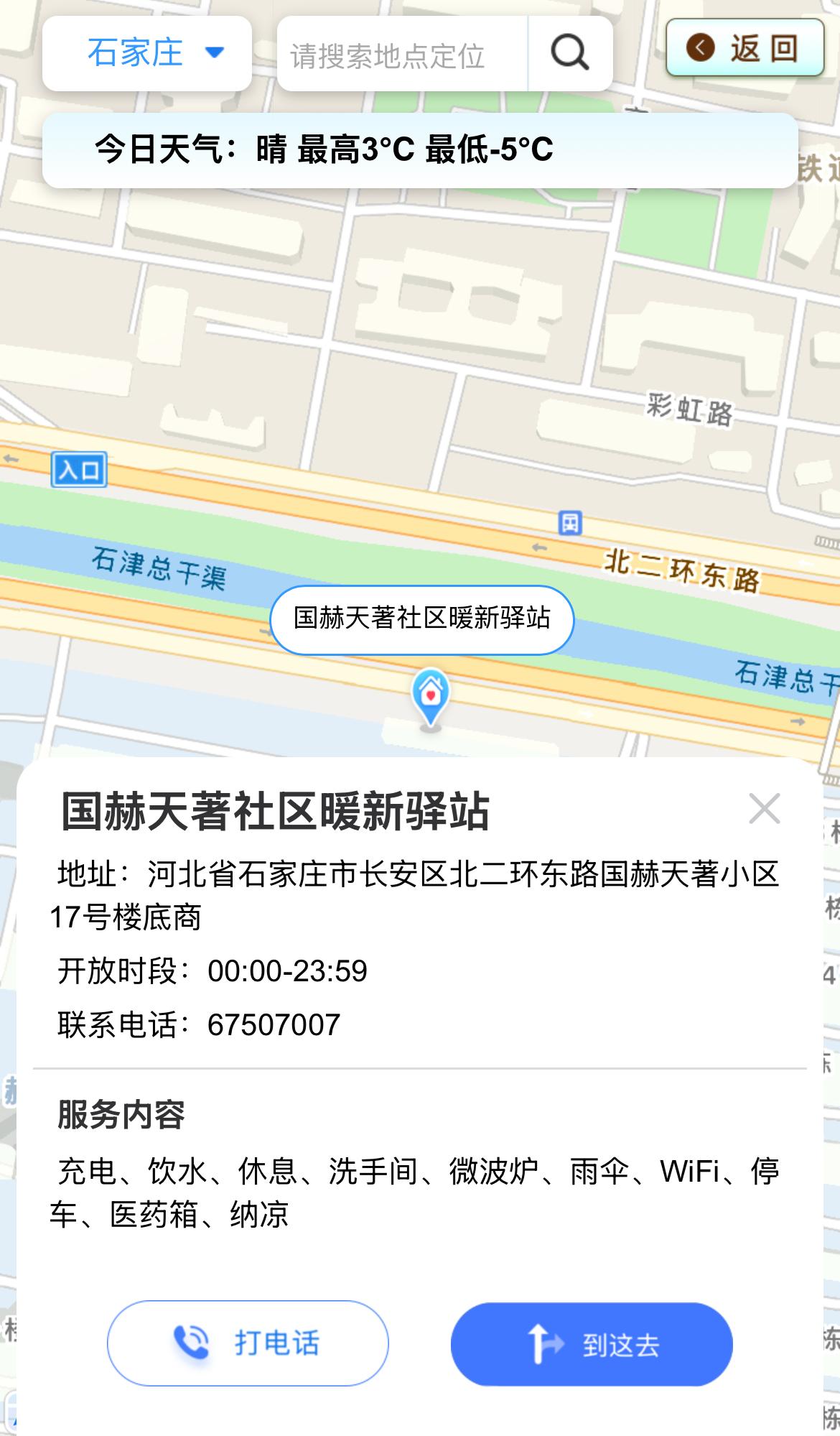 打开平台,点击“驿站地图”板块,系统自动定位并显示周边可用驿站,并支持一键导航直达、电话联系,直观查看可提供服务、开放状态等。