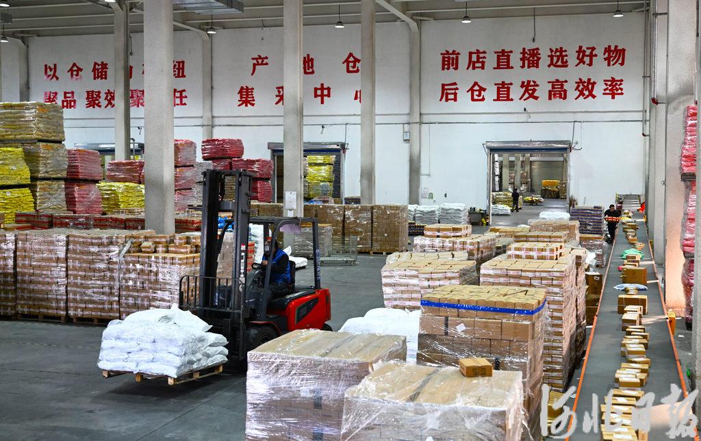 “前店直播选好物,后仓直发提效率。我们还把直播间搬到仓库,‘前店后仓’让产品更快到达消费者手中。”杨少杰介绍,仓库附近1公里范围内有顺丰、邮政、极兔等多家快递公司,消费者订单支付后1小时内,他们便可完成快递交接与分拨。
