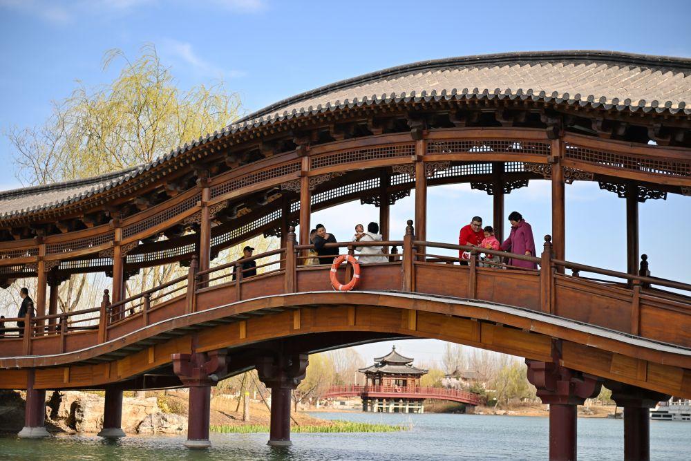2025年3月19日,市民在雄安新区悦容公园内休闲。