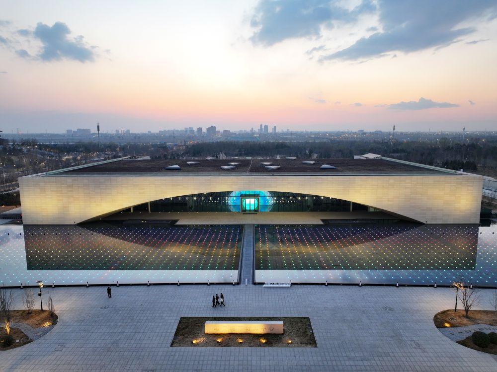 雄安城市计算中心(2025年3月15日摄,无人机照片)。被誉为雄安之眼的雄安城市计算中心缀于新城额间,该建筑的拱形借鉴了千年古桥赵州桥的形制。