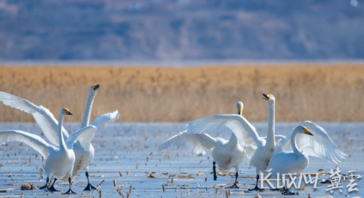 怀来县官厅水库迎来美丽的天鹅。孙一民 摄