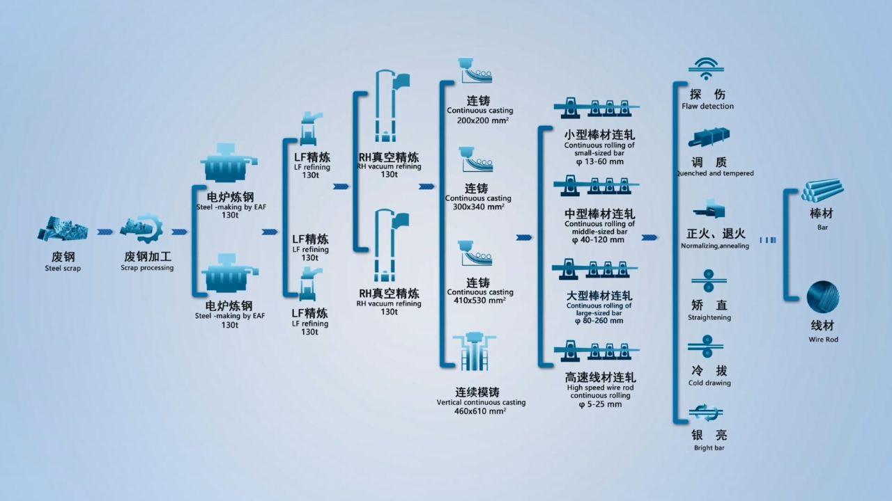 在石家庄市井陉矿区同样有一家“环保绩效A级企业”——河钢集团石钢公司。这里竟然没有高炉,没错,石钢公司摒弃了传统钢铁生产的烧结、炼铁等煤炭高消耗环节,以废钢为主要原料,采用电炉短流程炼钢工艺,实现了从“源头”到“末端”的全流程绿色制造。