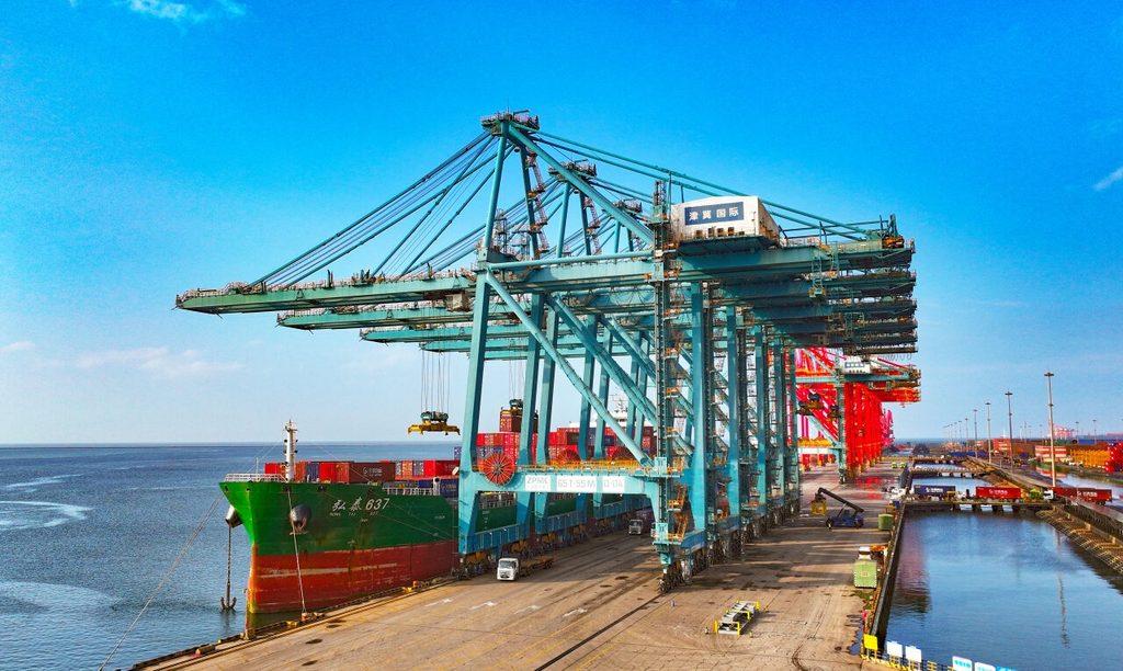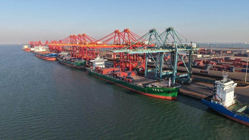 2025年11月30日,繁忙的黄骅港综合港区集装箱码头。杨永盛 摄