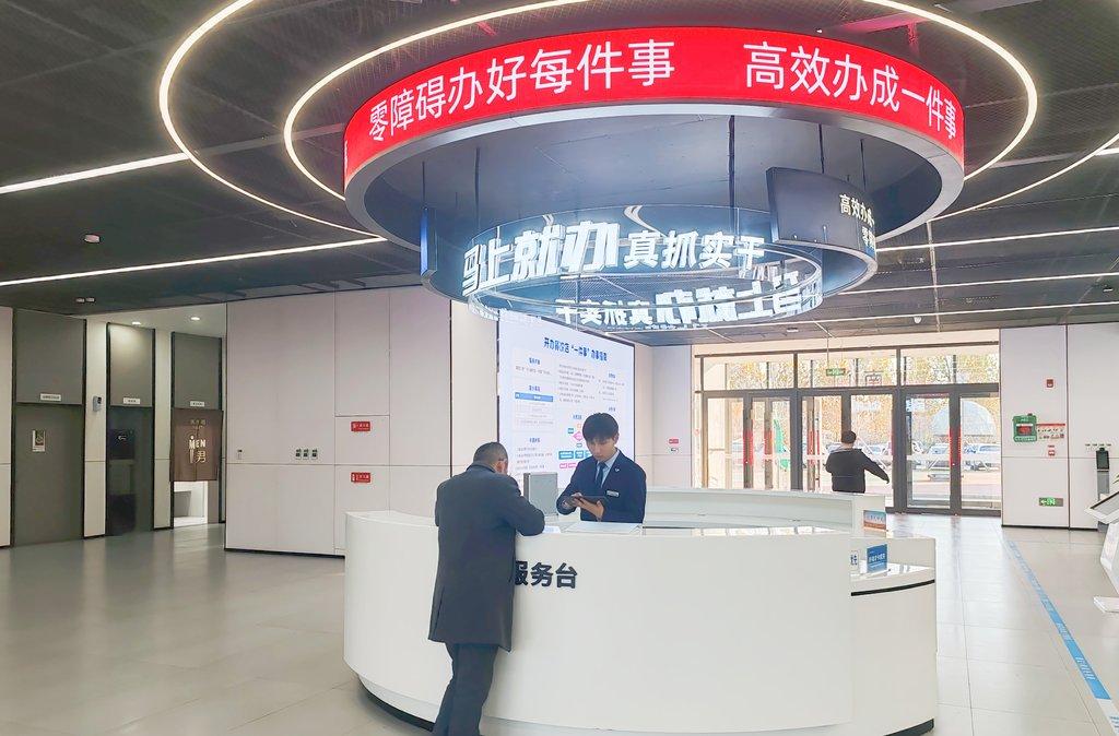 日前拍摄的雄安新区政务服务中心。在这里,办事人只需在取号机前刷脸,系统即可自动识别并关联其身份信息,实现无证取号。河北日报见习记者 康晓博 摄