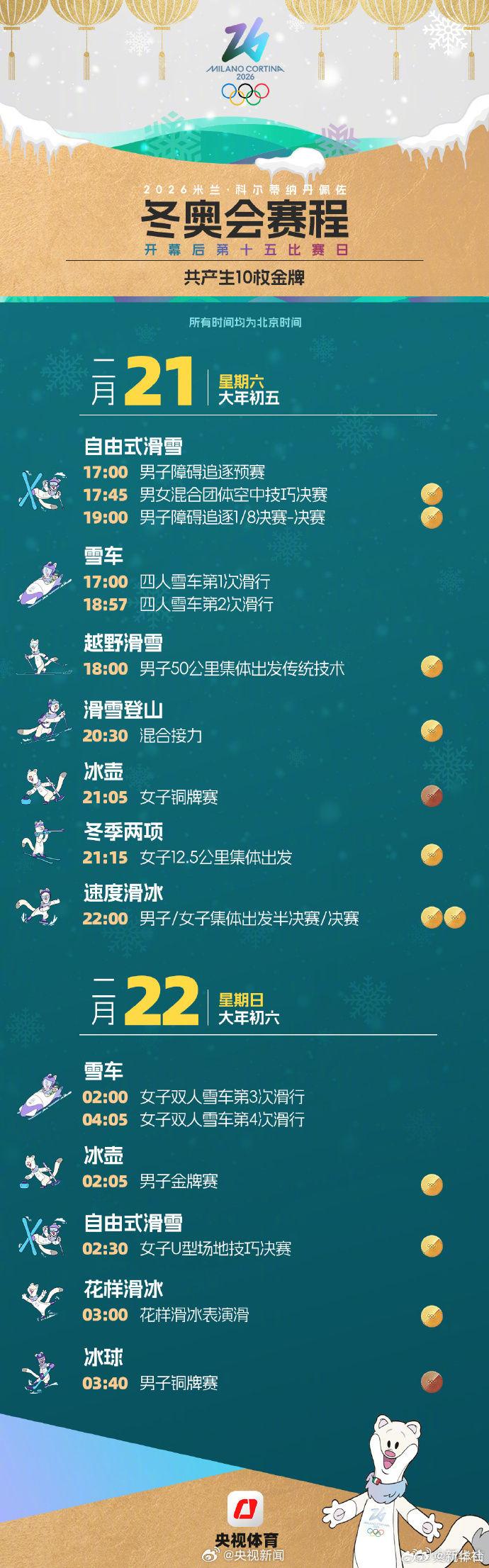 今天,米兰冬奥会30天倒计时,赛程图正式解锁!整整18天,冰壶、滑雪、速滑、冰球、花滑等精彩赛事轮番上演。来自全球各地的冬奥健儿,将向116枚金牌发起冲击!保存赛程,一起为中国冰雪健儿加油!