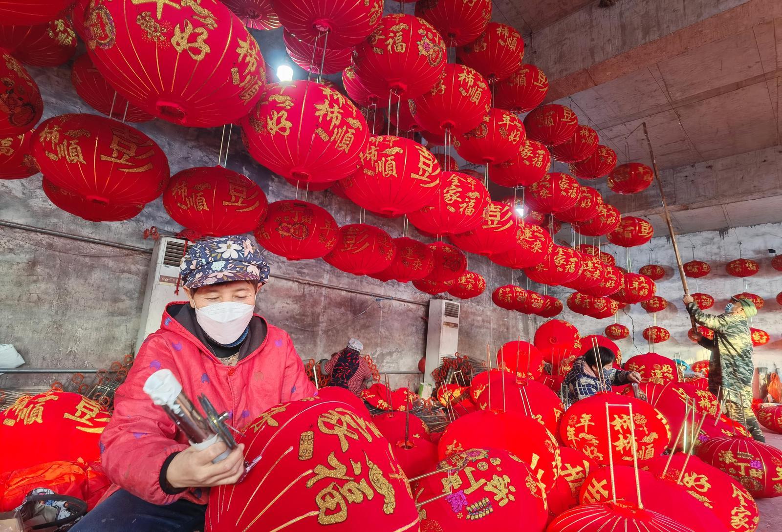 图为河北藁城一家“宫灯贷”企业员工正在赶制新春宫灯。科技日报记者 陈汝健 摄