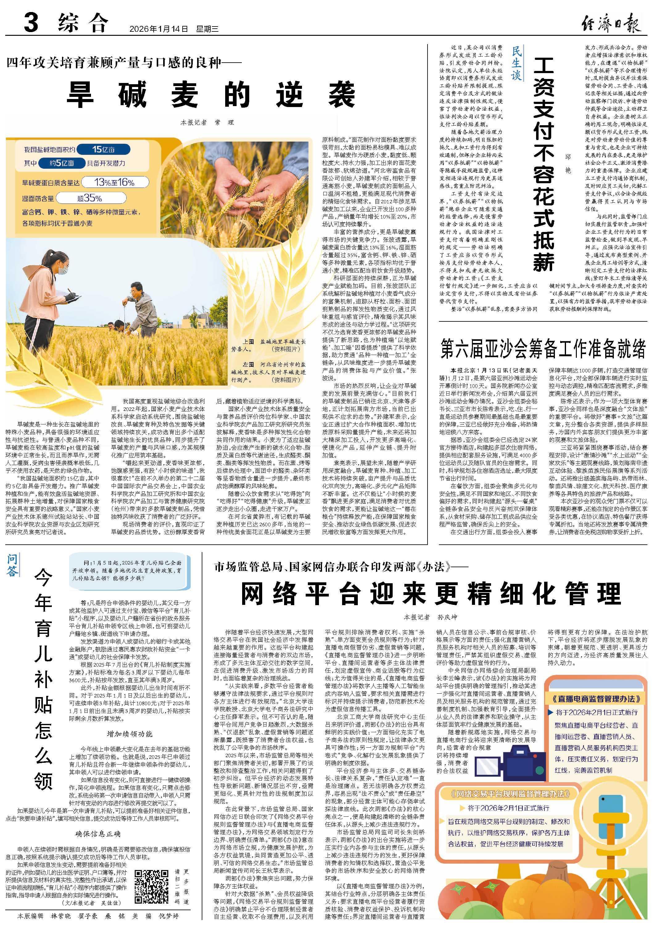 袁亮表示,展望未来,随着产学研用深度融合,旱碱麦育种、种植、加工技术将持续突破,亩产提升与品质优化双向发力,高端化、多元化产品矩阵不断丰富。这不仅能让“小时候的麦香”飘进更多家庭,满足消费者对优质饮食的需求,更能让盐碱地这一“潜在粮仓”持续释放产能,在保障国家粮食安全、推动农业绿色低碳发展、促进农民增收致富等方面发挥更大作用。(记者 常理)